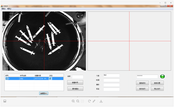 1,  系統(tǒng)采用大視野粗抓針管再配合小視野精定位,同時(shí)判斷針管的正反