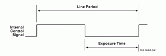 由外部送來的訊號作為同步觸發(fā)訊號, 但此上升方波僅作為開始曝光的決定訊號, 曝光時間長短可由使用者設(shè)定, 同時此設(shè)定的曝光時間也決定線周期時間。