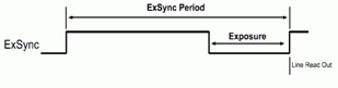 由外部送來的訊號作為同步觸發(fā)訊號, 主要是取方波下降時作為開始曝光取像, 但整個線周期時間還是由外同步訊號周期時間決定。