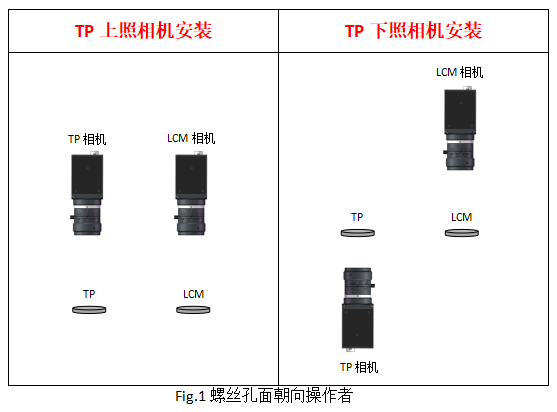 相機的安裝方向:以操作者站立調試的位置為基準(一般就是顯示器的位置),相機的螺絲孔面朝向操作者,標簽面(即正面)遠離操作者。這樣才能保證實際圖像和顯示器圖像保持一致性,方便調試。