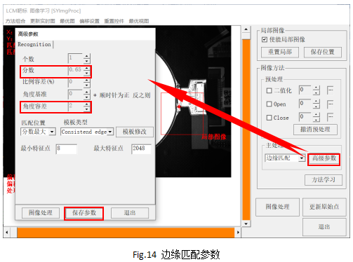 ? Step4:調整高級參數。點擊“高級參數”,進入高級參數界面,調整參數如下圖14所示??筛鶕嶋H情況修改“分數”、“角度容差”參數,修改完成后點擊保存。