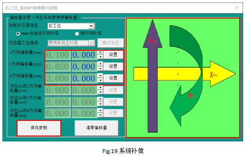 根據(jù)補(bǔ)償方向圖示,在右側(cè)對(duì)應(yīng)的方向補(bǔ)償寫入補(bǔ)償數(shù)值后,點(diǎn)擊“設(shè)置”累加到左側(cè)的總補(bǔ)償參數(shù)中。設(shè)置完補(bǔ)償參數(shù)退出前必須要點(diǎn)擊“保存參數(shù)”,補(bǔ)償才能生效。