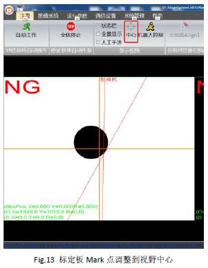 機(jī)械手吸起標(biāo)定板,將圓形Mark移動(dòng)到圖像視野中心。