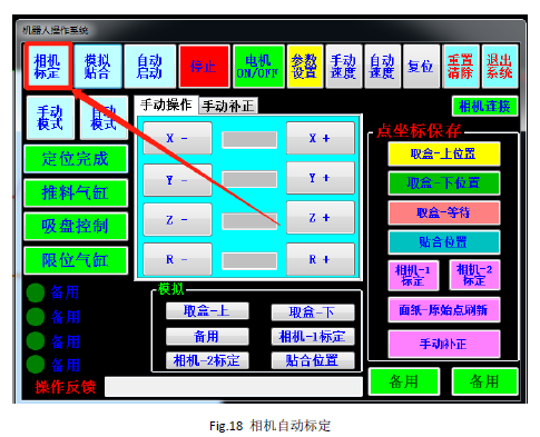 相機(jī)標(biāo)定,通過機(jī)器手平臺(tái)自動(dòng)完成相機(jī)和平臺(tái)的關(guān)系建立,特別方便客戶換型,用戶只需要1分鐘即可完成標(biāo)定。