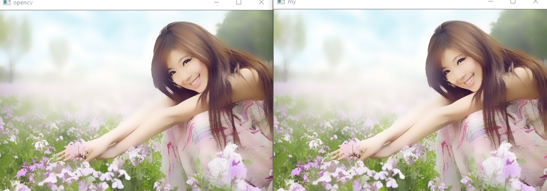實(shí)現(xiàn)的結(jié)果和OpenCV的實(shí)現(xiàn)相差無(wú)幾。sigma = 80,模板大小為20
