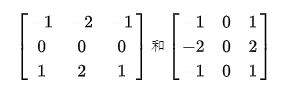 第一個(gè)模板,第三行和第一行的差近似x方向的偏微分;第二個(gè)模板,第三列和第一列的差近似y方向的偏微分,而且模板的所有系數(shù)只和為0,表示恒定灰度區(qū)域的響應(yīng)為0.