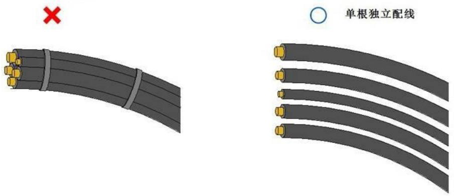 (2)多根特別是外徑不同的電纜組合同時(shí)保持電纜彎曲部分的自由度。