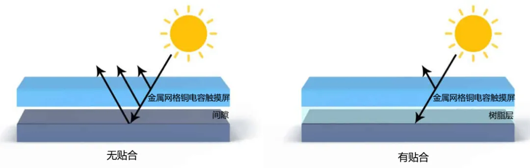 在制造 LCD 顯示器(包括觸摸屏)時(shí),屏幕的前玻璃層疊在 LCD 模塊上。這在標(biāo)準(zhǔn)觀看環(huán)境中不會(huì)出現(xiàn)問(wèn)題,但在某些條件下,例如室外放置,兩層之間的微小間隙會(huì)影響觀看性能。