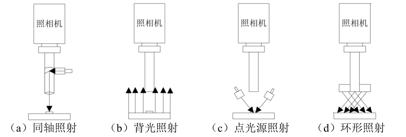 考慮到光源與鏡頭的相對位置以及相關(guān)的光學(xué)原理等因素,照明方式有很多種,常用的方式有同軸光源照射、背光光源照射等,下面對照明方式進(jìn)行設(shè)計比較。