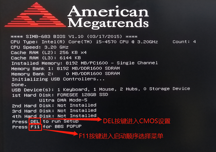 開機啟動按“DEL”按鍵可進入BIOS