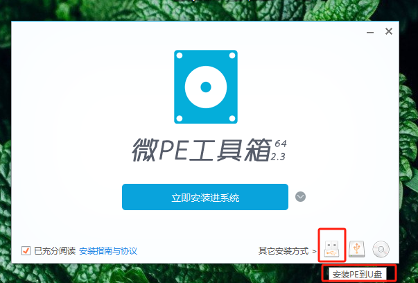 選擇右下角的“安裝PE到U盤”,在安裝前先將U盤插到電腦的usb接口上