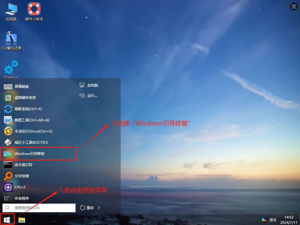9.重裝系統(tǒng)后會重啟,再次進入PE系統(tǒng)選擇“Windows引導(dǎo)修復(fù)”