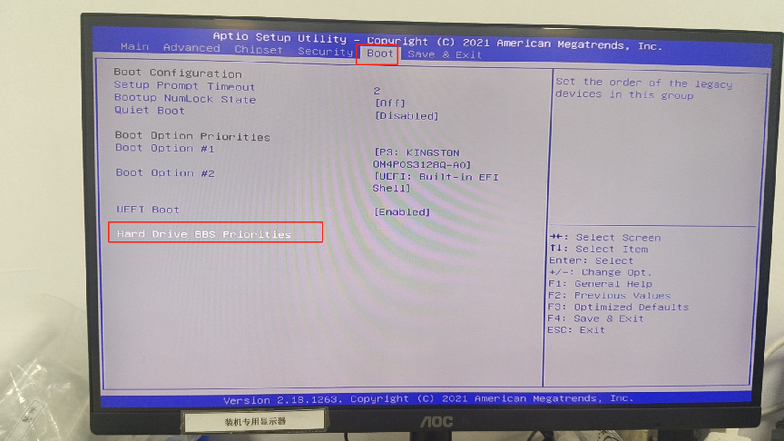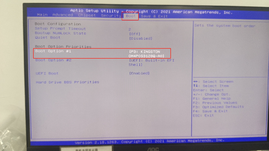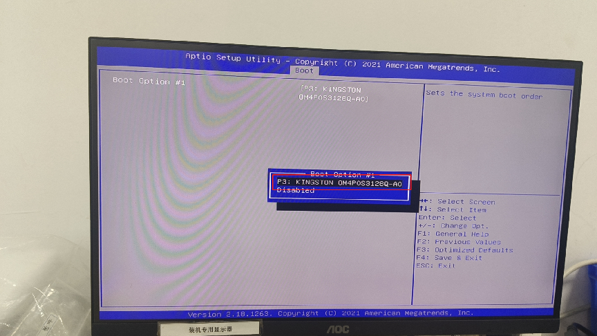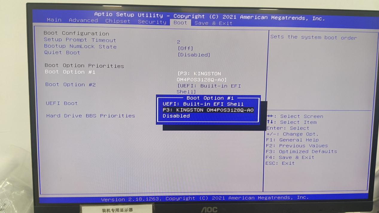選中“Boot Option #1”,按鍵盤上的“Entel”