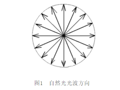 偏振是指橫波的振動(dòng)矢量(垂直于波的傳播方向)偏于某些方向的現(xiàn)象,光的偏振現(xiàn)象是由法國(guó)工程師馬呂斯于1808年發(fā)現(xiàn)的。眾所周知,自然光是一種電磁波,屬于橫波,其在垂直于傳播方向的平面內(nèi)包含著一切可能方向的振動(dòng),且平均而言在任一方向上都具有相同的振幅,即振動(dòng)方向是對(duì)稱的,如圖1所示。然而,當(dāng)光的振動(dòng)方向?qū)τ趥鞑シ较虿粚?duì)稱性時(shí),便成了偏振光。偏振現(xiàn)象橫波區(qū)別于其他縱波的一個(gè)最明顯的標(biāo)志。