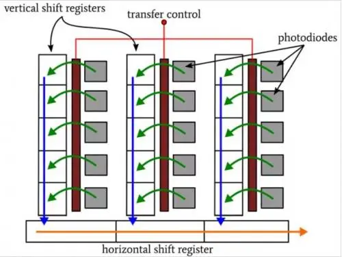半導(dǎo)體區(qū)域既可以作為光電元件,也可以作為電荷轉(zhuǎn)移器件,這有點違反直覺,但這正是 FF CCD 中發(fā)生的事情。在集成過程中,像素位置響應(yīng)入射光子積累電荷,在集成之后,電荷包垂直地通過像素位置向水平移位寄存器移動。