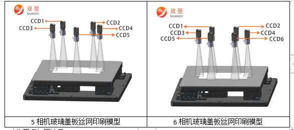 此方案適用領(lǐng)域?yàn)?透明材質(zhì)的FPC、玻璃、亞克力,以及非透明材質(zhì)都可適用,而5CCD、6CCD視覺對(duì)位絲印機(jī)系統(tǒng),主要更多的應(yīng)用在玻璃絲印應(yīng)用領(lǐng)域。