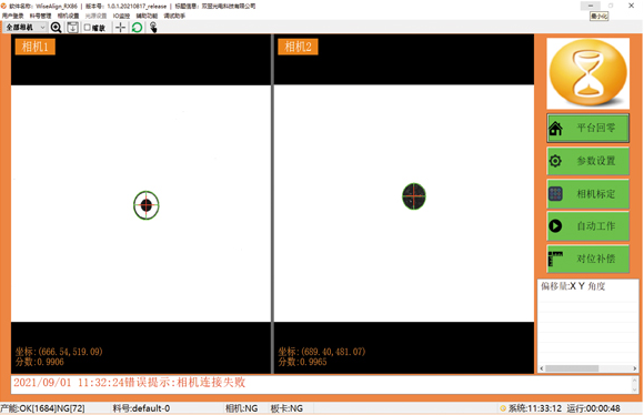 WiseAlign-2C雙相機(jī)自對位系統(tǒng)是工業(yè)自動化中運(yùn)用最多的系統(tǒng)之一,軟件的界面分布簡潔明了,便于用戶快速上手。在此案例中,利用WiseAlign軟件進(jìn)行高精度、高速度的對位作業(yè)。
