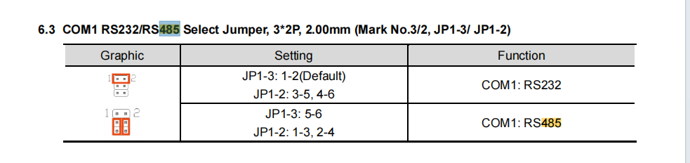 COM1:默認(rèn)是232模式,改成485模式需要在BIOS中設(shè)置和跳帽