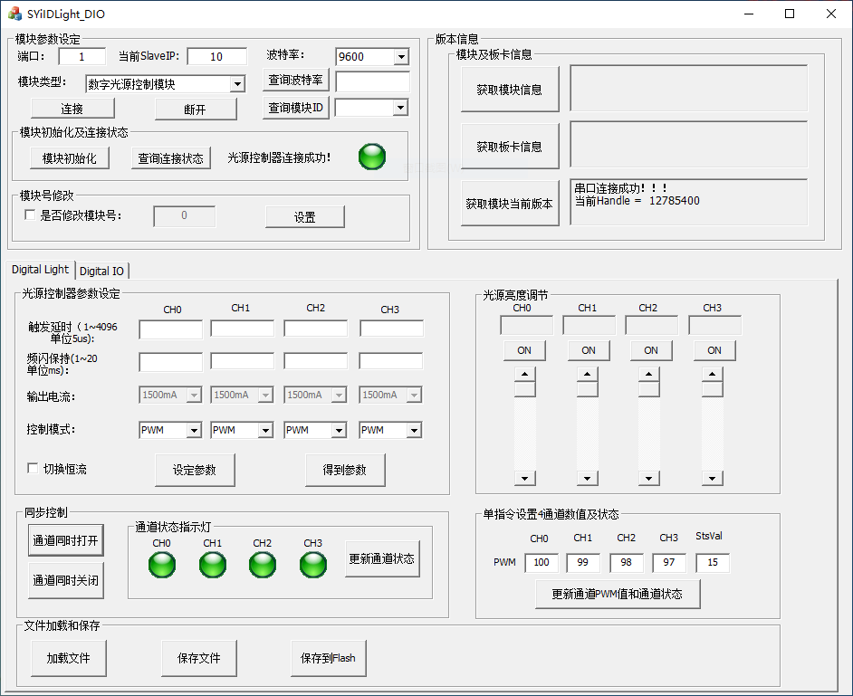 3、使用光源控制器 DEMO 軟件測試連接是否正常