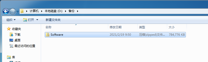 將U盤中的“Software”壓縮包文件拷貝至“備份”文件夾中