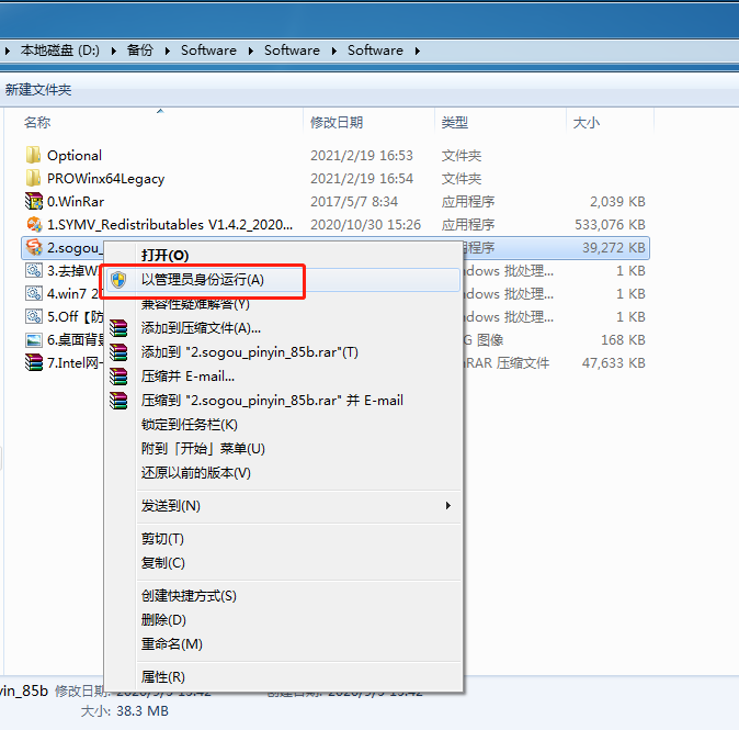 右鍵單擊“3.sogou_pinyin_85b.exe”程序安裝包。