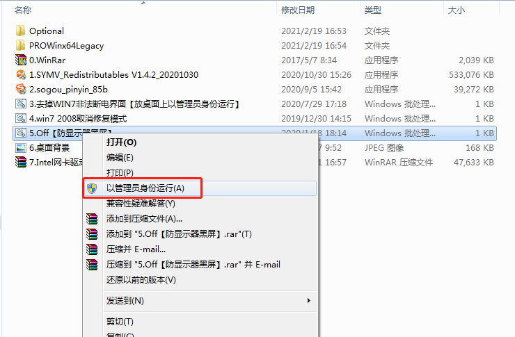 右鍵單擊文件“6.Off【防顯示器黑屏】.bat”。