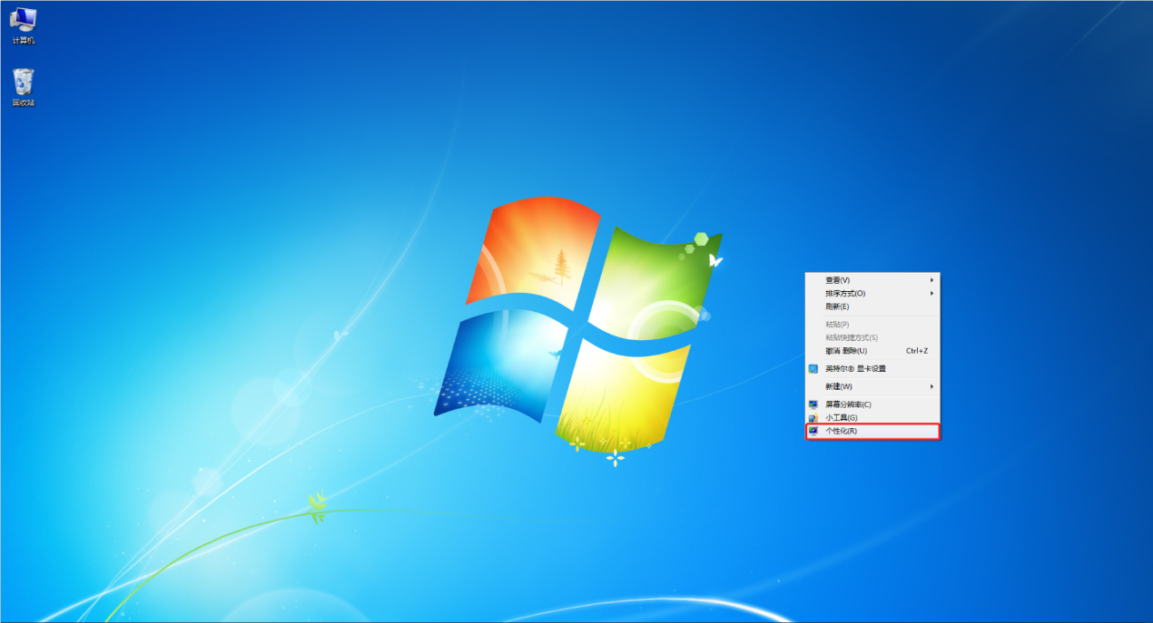 回到桌面,在桌面空白區(qū)域右擊。點(diǎn)擊“個(gè)性化”。