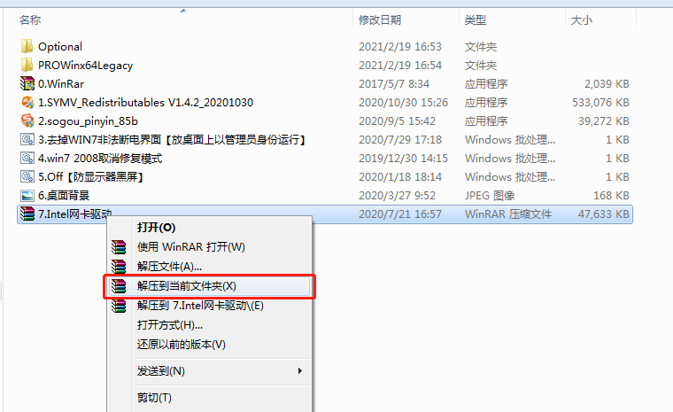 右鍵單擊文件“8.Intel網(wǎng)卡驅(qū)動(dòng).rar”。