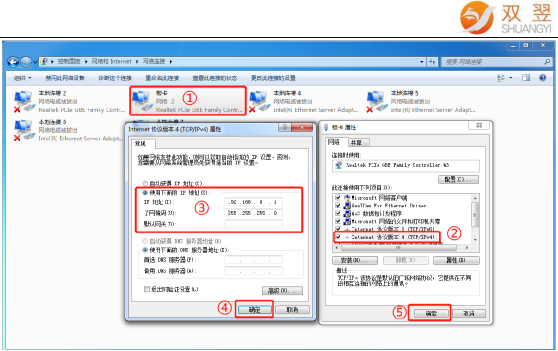→右鍵點(diǎn)開“板卡”的網(wǎng)絡(luò)屬性,按以下順序修改板卡的 IP 地址