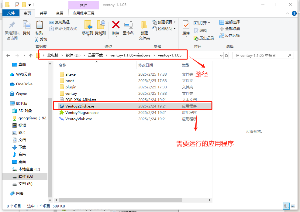打開ventoy文件夾,找到其中的“Ventoy2Disk.exe”應(yīng)用程序