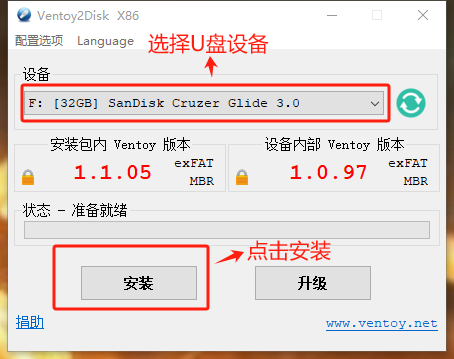 注意:安裝Ventoy,U盤會(huì)被格式化,請(qǐng)拿一個(gè)沒有用過或者先把U盤中的數(shù)據(jù)拷貝出來。