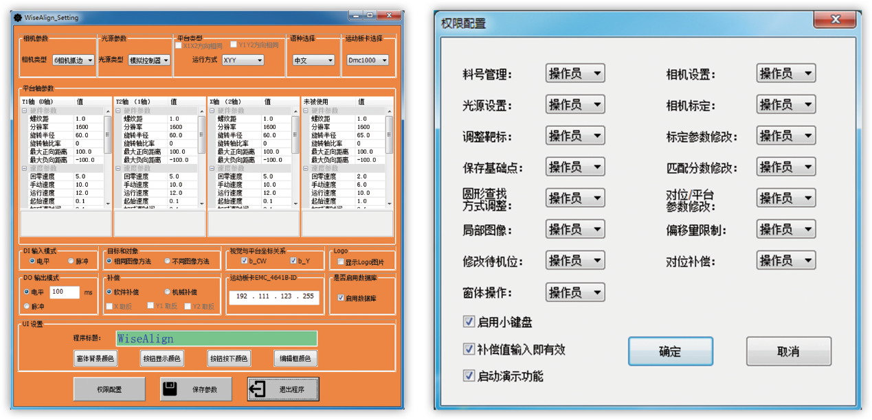 軟件分后臺配置軟件和運行軟件兩大部分。后臺軟件配置設(shè)備應(yīng)用工藝,硬件資源,UI交互即可完成;運行軟件簡潔明了,易操作;只需幾分鐘即可完成一臺新應(yīng)用的配置,快速進入調(diào)試階段;十幾分鐘完成設(shè)備視覺部分調(diào)試。