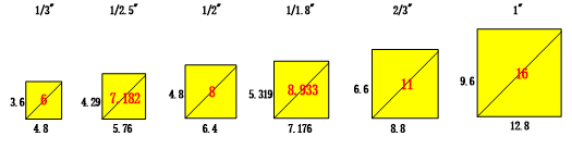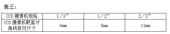 CCD攝像機(jī)靶面對(duì)角線有效尺寸