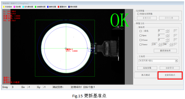 更新基準(zhǔn)點(diǎn)的目的是給視覺對位提供基準(zhǔn),選擇更新基準(zhǔn)點(diǎn)的前提是,該圖像確實(shí)是視覺對位的最終基準(zhǔn)。因?yàn)橐坏└禄鶞?zhǔn)點(diǎn)后,后面生產(chǎn),視覺系統(tǒng)將會每次將物料偏差糾正到基準(zhǔn)點(diǎn)位置。基準(zhǔn)點(diǎn)位置即是滿足自動化設(shè)備需求的物料最終位置。