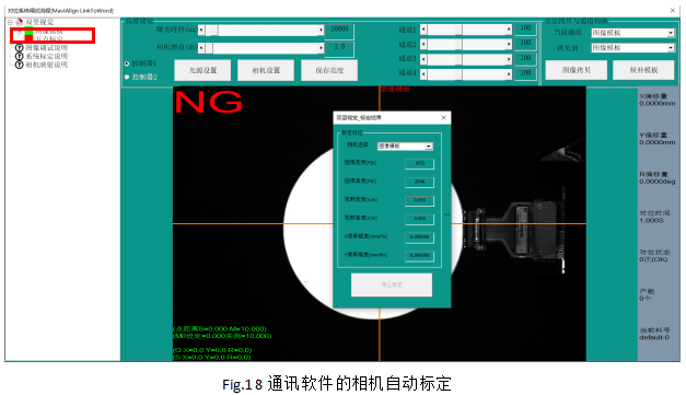 相機(jī)標(biāo)定,通過對位平臺自動完成相機(jī)和平臺的關(guān)系建立,特別方便客戶換型,用戶只需要1分鐘即可完成標(biāo)定。