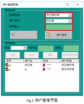 ② 用戶管理界面,輸入供應(yīng)商權(quán)限密碼:“310525”,點(diǎn)擊“用戶登陸”,進(jìn)入軟件管理權(quán)。