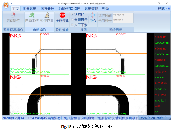 軟件上點(diǎn)擊中心,在圖像中可以看到橙色的十字線,這個(gè)為視野中心,在產(chǎn)品上料過(guò)程中,我們需要將產(chǎn)品放置到橙色十字交點(diǎn)即視野中心位置。