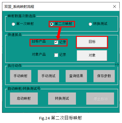 3) 勾選第二次映射,重復(fù)1)、2)步驟,再搬運(yùn)一次映射產(chǎn)品,記錄第二次目標(biāo)坐標(biāo)。