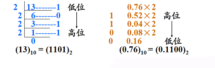 把十進(jìn)制數(shù)轉(zhuǎn)換為二進(jìn)制,對整數(shù)部分通過除2取余數(shù)來完成,對小數(shù)部分通過乘以2取整數(shù)來完成。