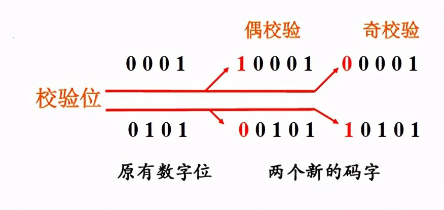 原理是在k位數(shù)據(jù)碼之外增加1位校驗位,使得K+1位碼字中取值1的位數(shù)總保持為偶數(shù)(偶效驗)或奇數(shù)(寄校驗),舉一個例子: