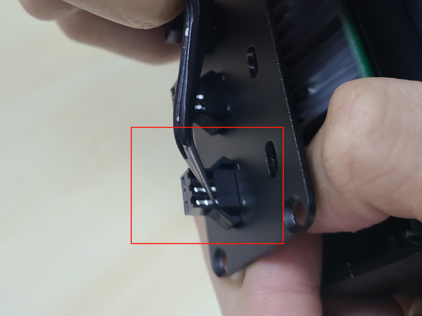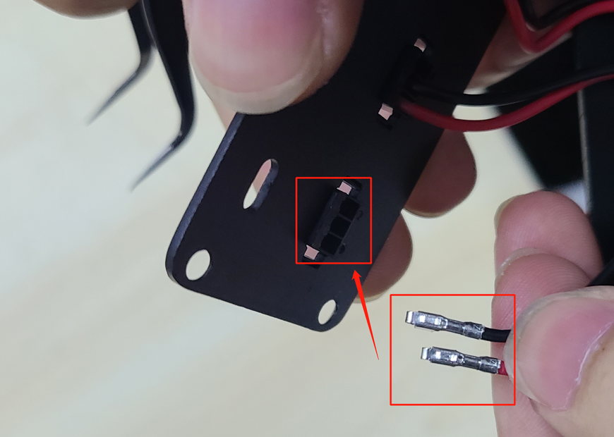 3、插入后用鑷子將卡扣向上,防止引腳線掉出