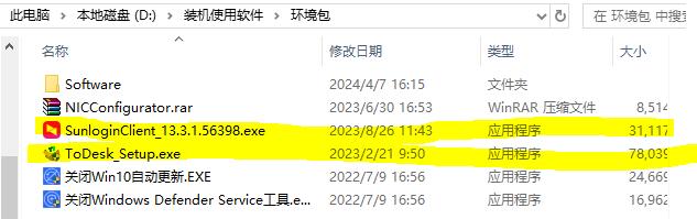 安裝“ToDesk”和“向日葵”時要安裝最新版本的在“D:\裝機使用軟件\環(huán)境包”路徑下