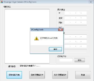 3) 點擊“獲取相機列表”,會彈出打開相機失敗以及請確認網(wǎng)卡IP地址和相機地址是否匹配。