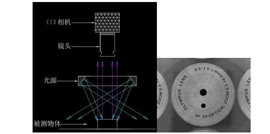 光源和相機(jī)在差不多同一側(cè),光線直接照亮被測(cè)物表面然后反射回相機(jī)。這種方式適用于大部分表面特征明顯的二維檢測(cè),比如讀取二維碼、檢測(cè)包裝印刷缺陷。但它有個(gè)天敵,反光。一旦物體表面光滑,討厭的耀斑就會(huì)淹沒(méi)掉關(guān)鍵信息。
