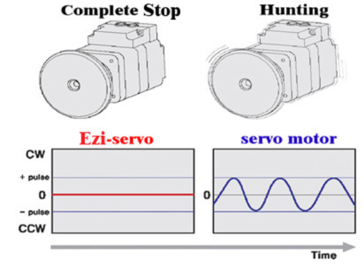 跟傳統(tǒng)的伺服馬達(dá)做比較,它沒有一般伺服馬達(dá)一直要做追隨補(bǔ)償?shù)膭?dòng)作, Ezi-SERVO是利用步進(jìn)馬達(dá)的特性,當(dāng)?shù)竭_(dá)目標(biāo)位置時(shí),Ezi-SERVO 不會(huì)再做任何補(bǔ)償?shù)膭?dòng)作,此特點(diǎn)特點(diǎn)多是應(yīng)用在影像系統(tǒng),因?yàn)橛跋裣到y(tǒng)停止時(shí)不能有抖動(dòng)現(xiàn)像。