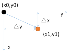 我們知道,圖像是由像素組成的,而像素的集合就相當(dāng)于一個(gè)二維的矩陣,每一個(gè)像素都有一個(gè)“位置”,也就是像素都有一個(gè)坐標(biāo)。假設(shè)原來的像素的位置坐標(biāo)為(x0,y0),經(jīng)過平移量(△x,△y)后,坐標(biāo)變?yōu)椋▁1,y1),如下所示: