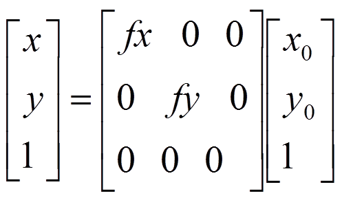 圖像的比例縮放變換是指給定的圖像在x軸方向按比例縮放fx倍,在y軸方向縮放fy倍,從而獲得一幅新的圖象。比例縮放前后兩點(diǎn)P0(x0,y0)、P(x,y)之間的關(guān)系用矩陣形式可以表現(xiàn)為: