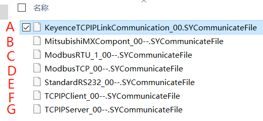 在軟件的根目錄下“SYCommunicateFile”中生成的通訊文檔,如下圖所示:(注釋:文檔名稱標(biāo)準(zhǔn)格式為 XX_00.SYCommunicateFile,如下圖 A 文檔符合名稱定義,因此系統(tǒng)加載此通信方式)