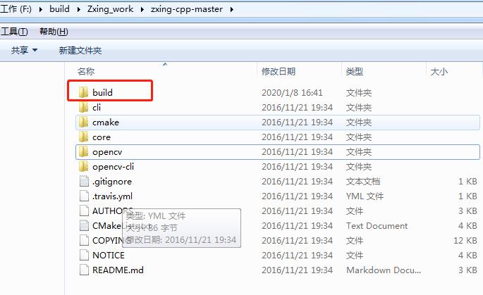 2)進(jìn)入解壓后的zxing-cpp-master目錄,新建一個(gè)build目錄
