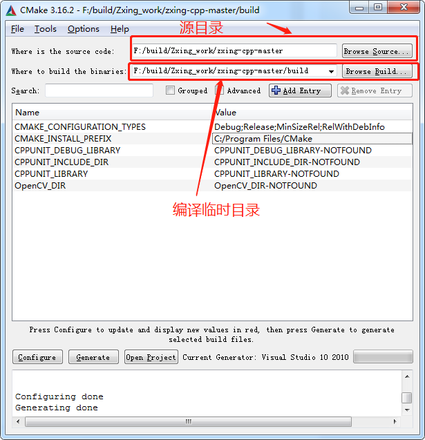 點(diǎn)擊“Generate” 然后cmake自動(dòng)生成VS工程。如下狀態(tài)顯示 Generate Done